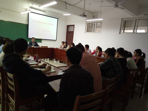 4月13日,经济管理系全体教师在社科楼407会议室召开期中工作会议,会议由系主任王金献主持。