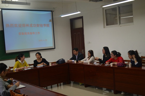 4月23日,郑州成功财经学院财务管理教研室主任马玉洁、优秀教师李晓、刘静淑、冯越等一行六人莅临经济管理系交流访问。