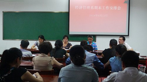 6月12日下午,经济管理系在教四405召开期末工作安排会,系主任孟广章及全体教师参加了会议。会议由行政秘书董高丽主持。