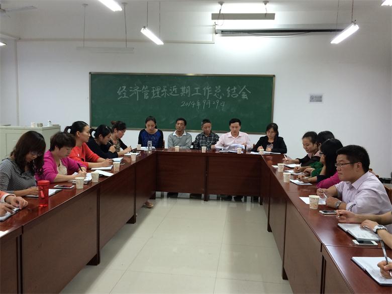 9月29日下午,经济管理系在社科楼405会议室召开近期工作总结会,系主任孟广章、特聘教授王金献及全体教师参加了会议。