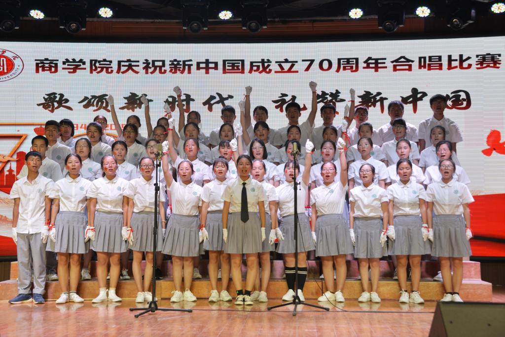 七十年峥嵘岁月,七十年砥砺兼程。在举国上下庆祝中华人民共和国成立70周年之际,商学院通过“歌颂新时代,礼赞新中国”合唱比赛,弘扬爱国主义精神,激发了广大师生的爱国热情。商学院师生纷纷表示,将不忘初心,勇于奋进,担当新时代责任,扬帆新征程。