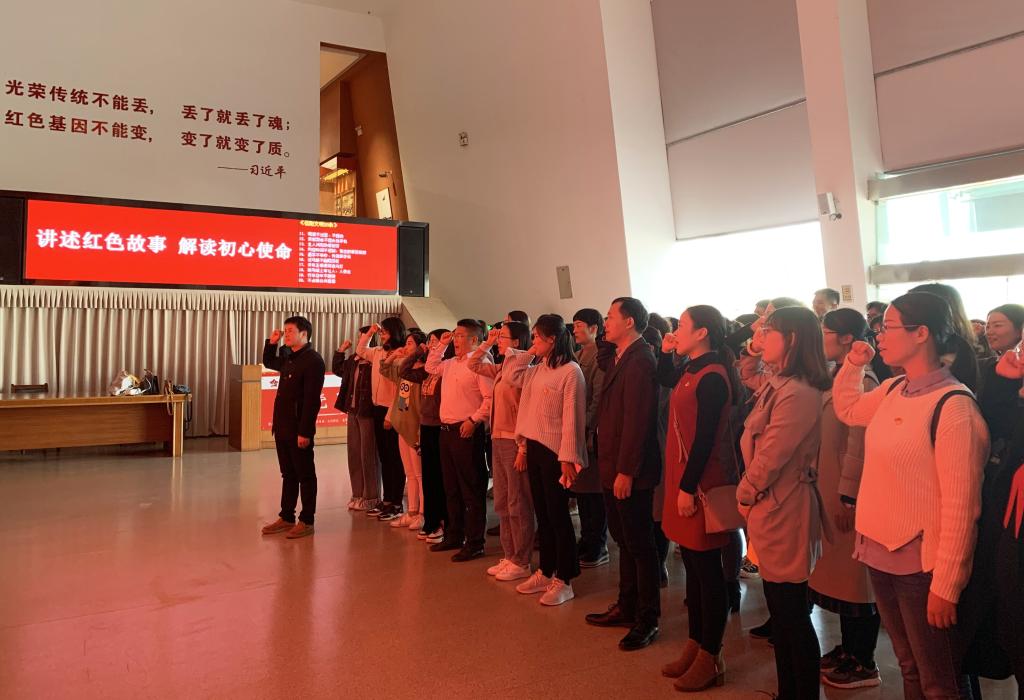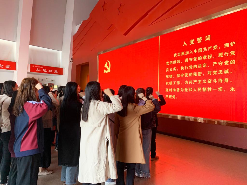 参观伊始,全体师生党员在“不忘初心、牢记使命”主题展馆大厅,面对鲜红的党旗,在张富庄的带领下,高举右拳庄严宣誓,重温入党誓词,唤醒和铭记入党时的初心,坚定了作为一名党员的信仰和使命。张富庄强调了每个党员要在党爱党,在党言党,在党忧党,在党为党。时刻不忘自己应尽的义务和责任,践行对信仰的承诺。