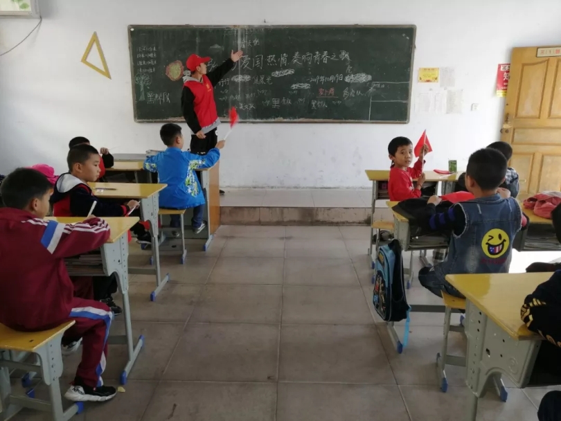 10月19日下午,商学院志愿服务队党员志愿者到浉河区金牛山街道南湖路金色童年小学开展了以“弘扬爱国热情,奏响青春之歌”为主题的志愿服务活动。为了用实际行动向全体学生诠释爱国精神的可贵之处,引导学生时刻心系国家发展,将爱国情感转化为刻苦学习,奋发图强的动力。