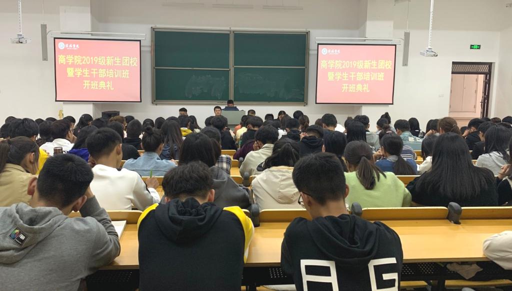 11月1日中午,商学院在综合楼203教室举行2019级新生团校暨学生干部培训开班仪式。商学院党总书记张富庄、团总支书记盛士蔚和商学院2019级新生团干部、团员代表和全体学生会干部近200人参加了本次开班仪式。活动由团总支副书记李卓(学生)主持。