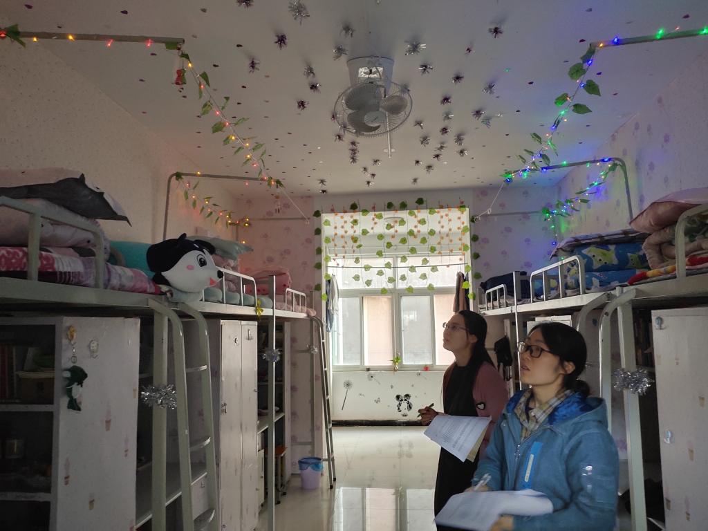 从宿舍安全、卫生以及宿舍文化建设方面进行评比,涌现出了很多装饰优美、氛围良好的宿舍,有的宿舍在墙上贴上漂亮的墙纸,有的宿舍用一年的生活照做影视墙,有的宿舍让人感觉走进了森林世界,有的宿舍让人置身于花的海洋……朴实的宿舍装饰融入了宿舍同学们的心血,也体现了宿舍同学之间浓厚了友谊。检查评比期间,辅导员老师对学生宿舍装扮整理悉心指导,评选出一大批优雅宿舍。