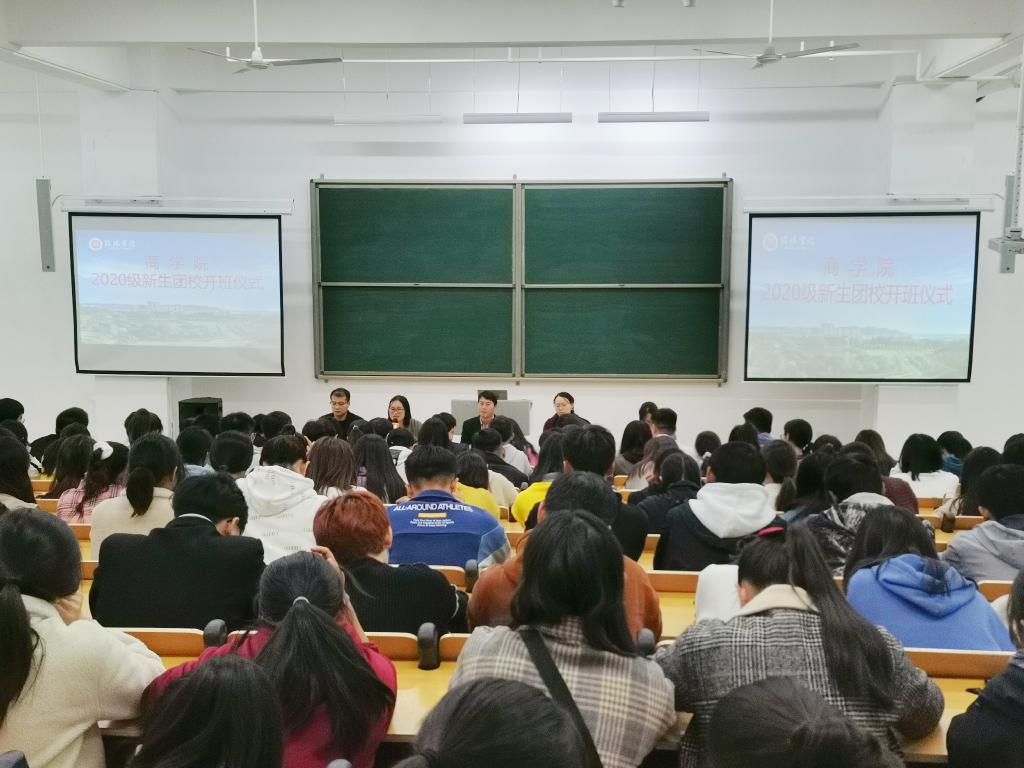 为深入学习贯彻习近平新时代中国特色社会主义思想和党的十九大精神、团十八大精神,深刻领会习近平总书记对广大青年的寄语精神,深入落实“全团抓思想政治引领”的工作部署,扎实推进团干部上讲台、讲团课的工作任务,进一步增强2020级青年团员的政治意识。11月6日,商学院在综合楼203教室举行2020级新生团校开班仪式。党总支书记张富庄,学工秘书董高丽,团总支书记盛士蔚,辅导员秦宁、封宇和商学院2020级全体团学干部参加了本次开班仪式,盛士蔚主持会议。