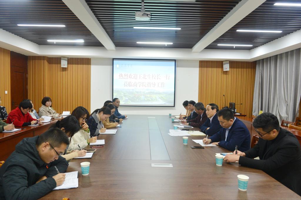 11月17日下午,商学院在综合楼715会议室召开教职工代表会议。校长王北生、校长助理张永志出席会议,党办、校办、人事处有关负责人和商学院教师代表参加会议。