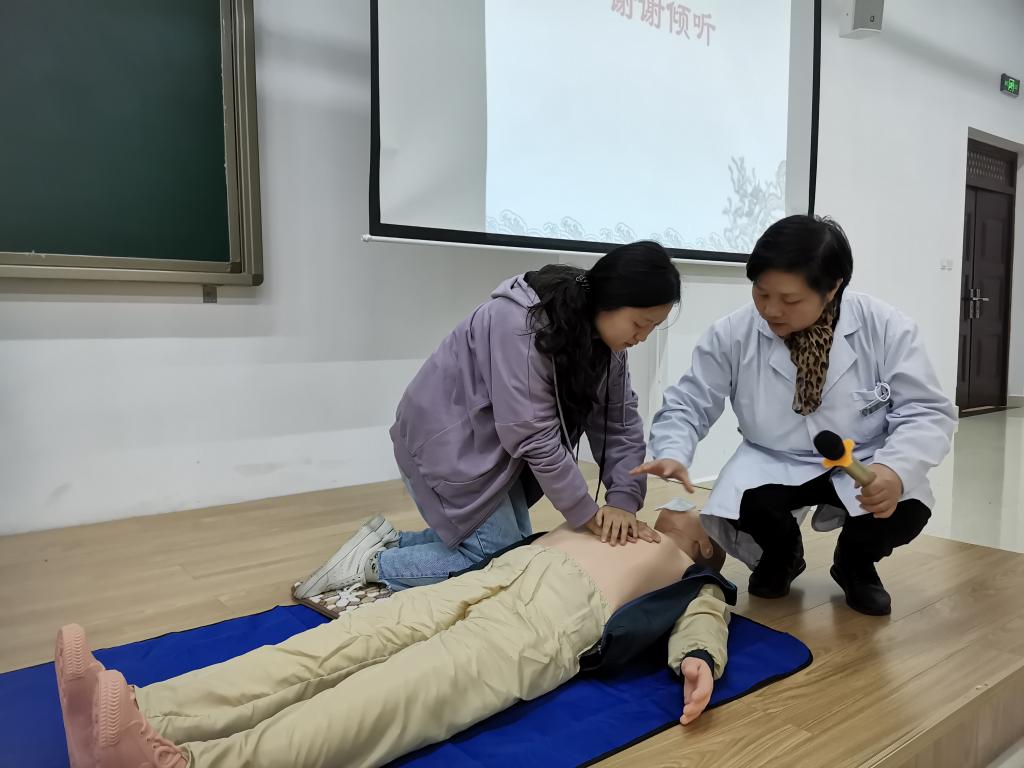 11月19日中午,商学院邀请校医院穆金霞、梅红、宋敏等校园家庭医生团队在综合楼202教室对我院学生进行了心肺复苏培训。2020级各宿舍长、各年级主要班委以及辅导员老师参加了此次培训。