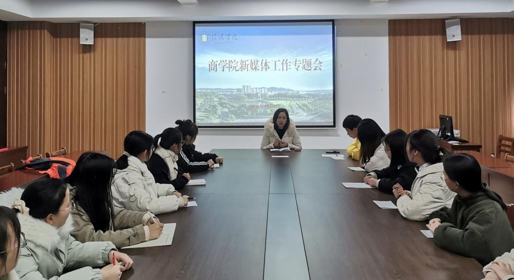 12月9日中午,商学院在综合楼715会议室召开了新媒体工作会议,行政秘书高昌慧、商学院青年融媒体中心成员参加了会议。