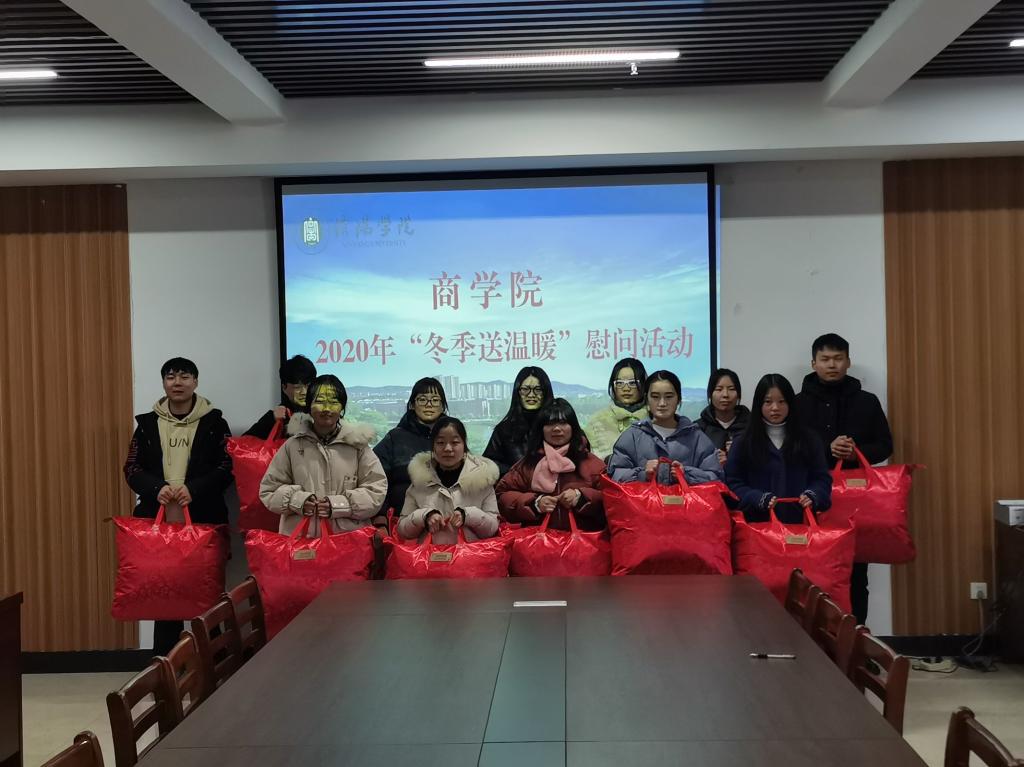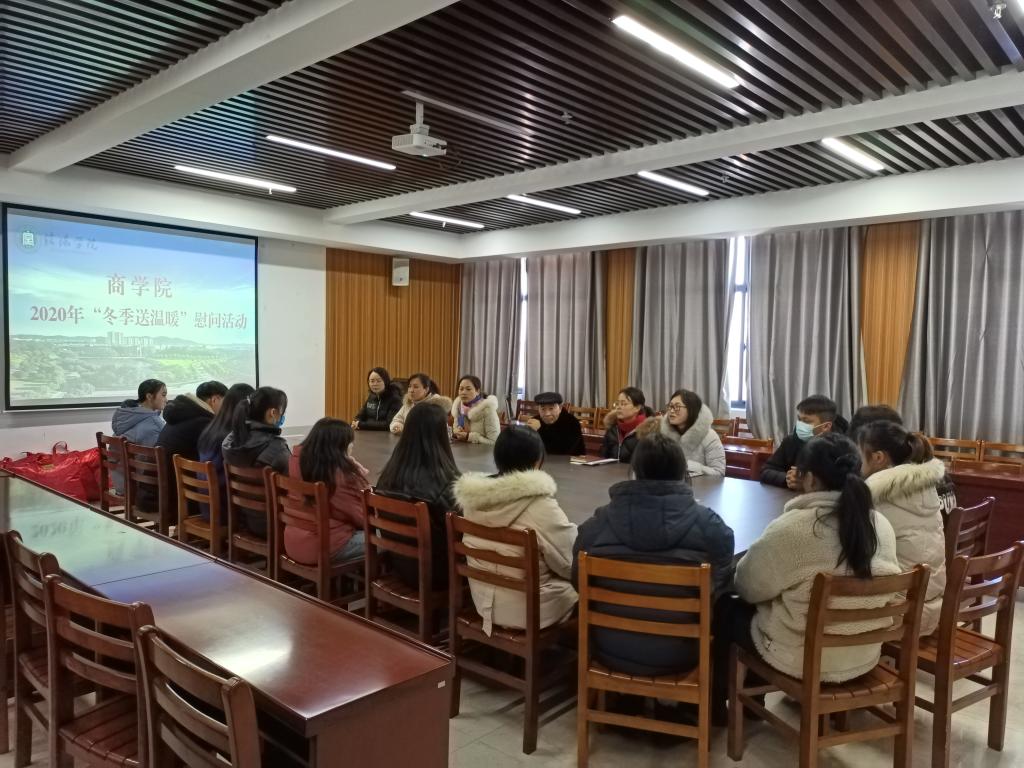 临近期末,寒冬来袭,为切实做好学生工作,帮助贫困学生抵御严寒,12月30日,商学院在综合楼715会议室开展冬季送温暖活动,向贫困学生发放了御寒棉被。商学院院长于世良、党总支书记胡秀云、学工秘书董高丽、行政秘书高昌慧、团总支书记盛士蔚、辅导员秦宁老师、封宇老师参与此次慰问活动。