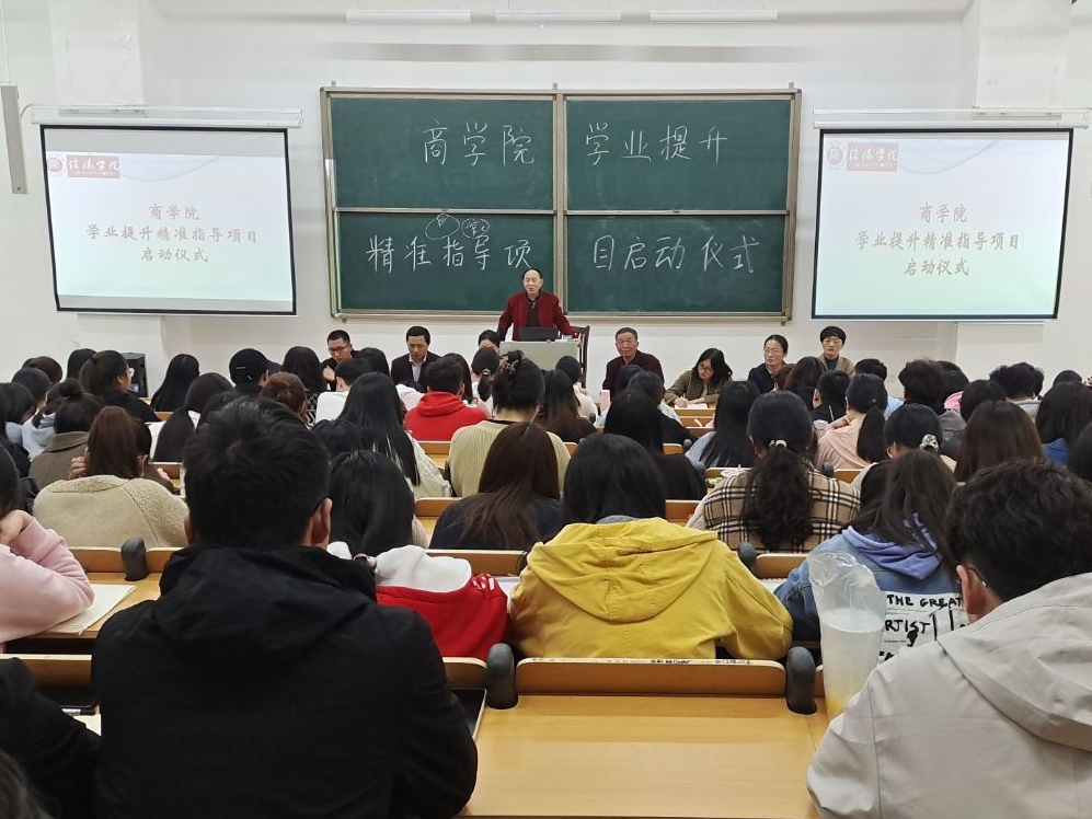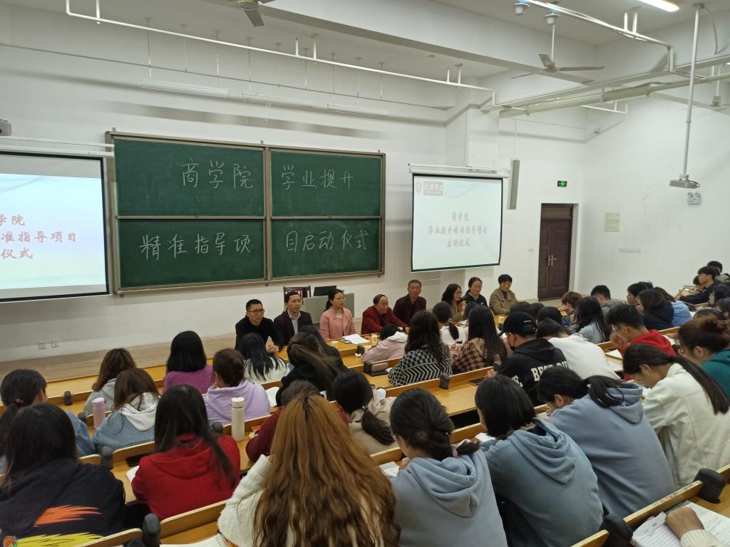 3月30日晚,商学院"学业提升精准指导项目"启动仪式在综合楼203召开。院长于世良、教学副院长、党总支书记胡秀云、教学秘书盛大俊、学工秘书董高丽、指导老师李鹏、商学院辅导员以及2018级部分考研学生参与此次活动。本次活动由胡秀云主持。