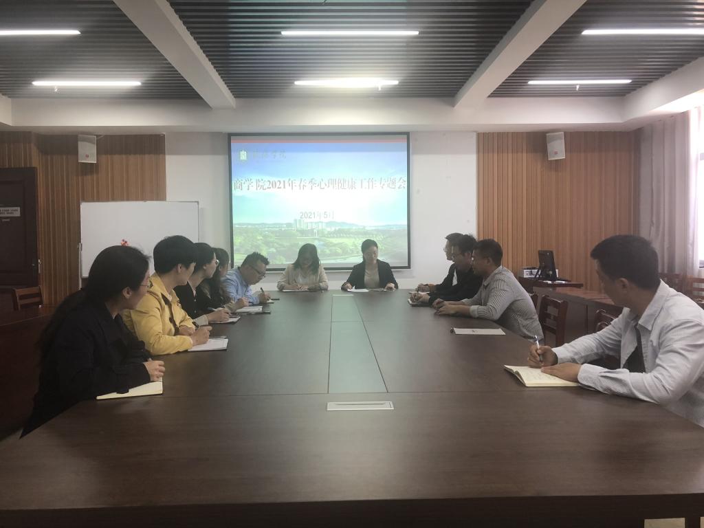 5月8日,商学院在综合楼715召开2021年春季心理健康工作专题会,党总支书记胡秀云、学工秘书董高丽及全体辅导员参与会议,会议由胡秀云主持。