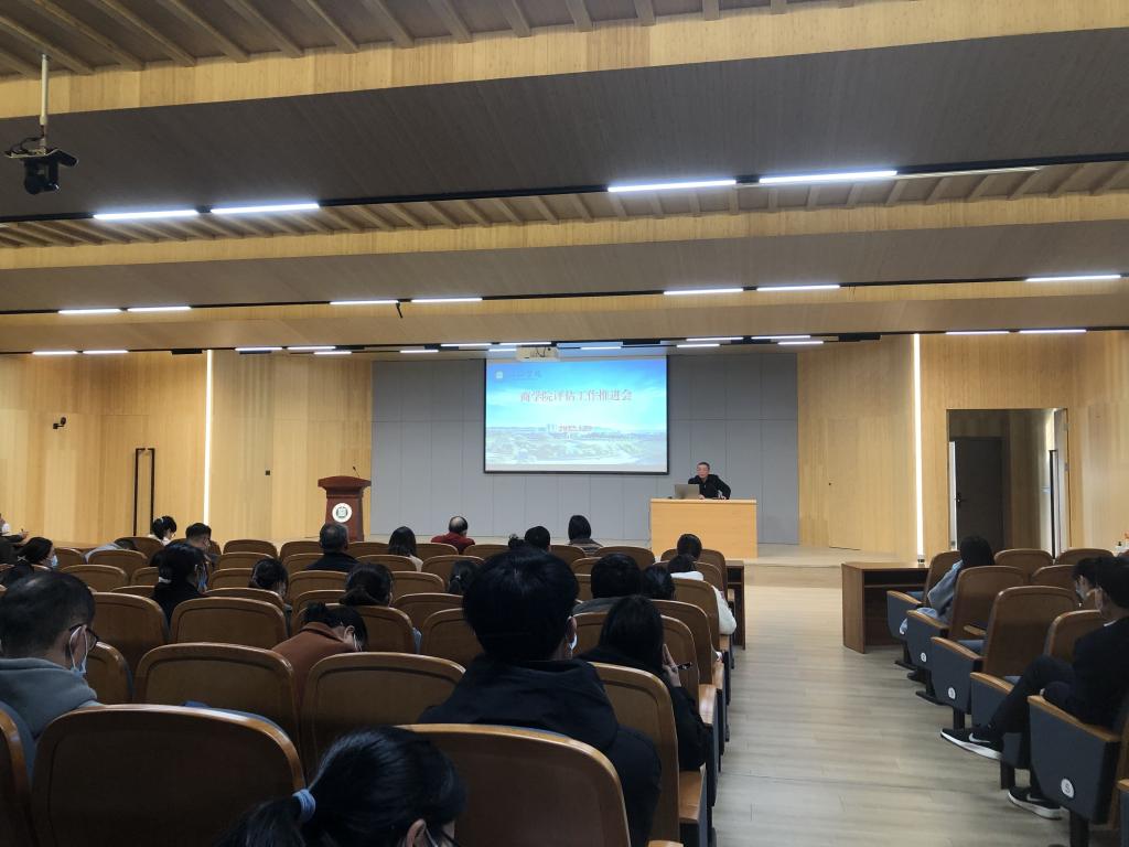 于世良指出,疫情防控工作是当前时期的重要工作,希望全体教师一定要提高政治站位,树立大局意识,时刻保持高度警醒状态,以高度的责任感、使命感切实将工作抓实抓细。试卷、论文是重要的教学材料,教学设计是课堂教学的重要环节,是教学质量的基本保障,希望全体老师高度重视,务必按照评估的要求,确保各项材料的规范性、完整性,高质量的完成各项任务。