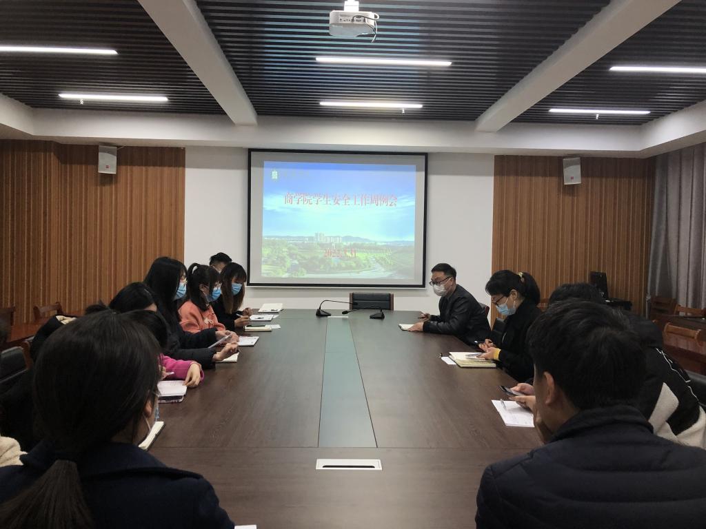 3月31日中午,为进一步提高学生自我防护意识,推进学生安全工作,商学院组织召开学生安全工作周例会。党总支书记胡秀云、学工干事黄伟、团总支书记乔梁和全体辅导员参加了会议。