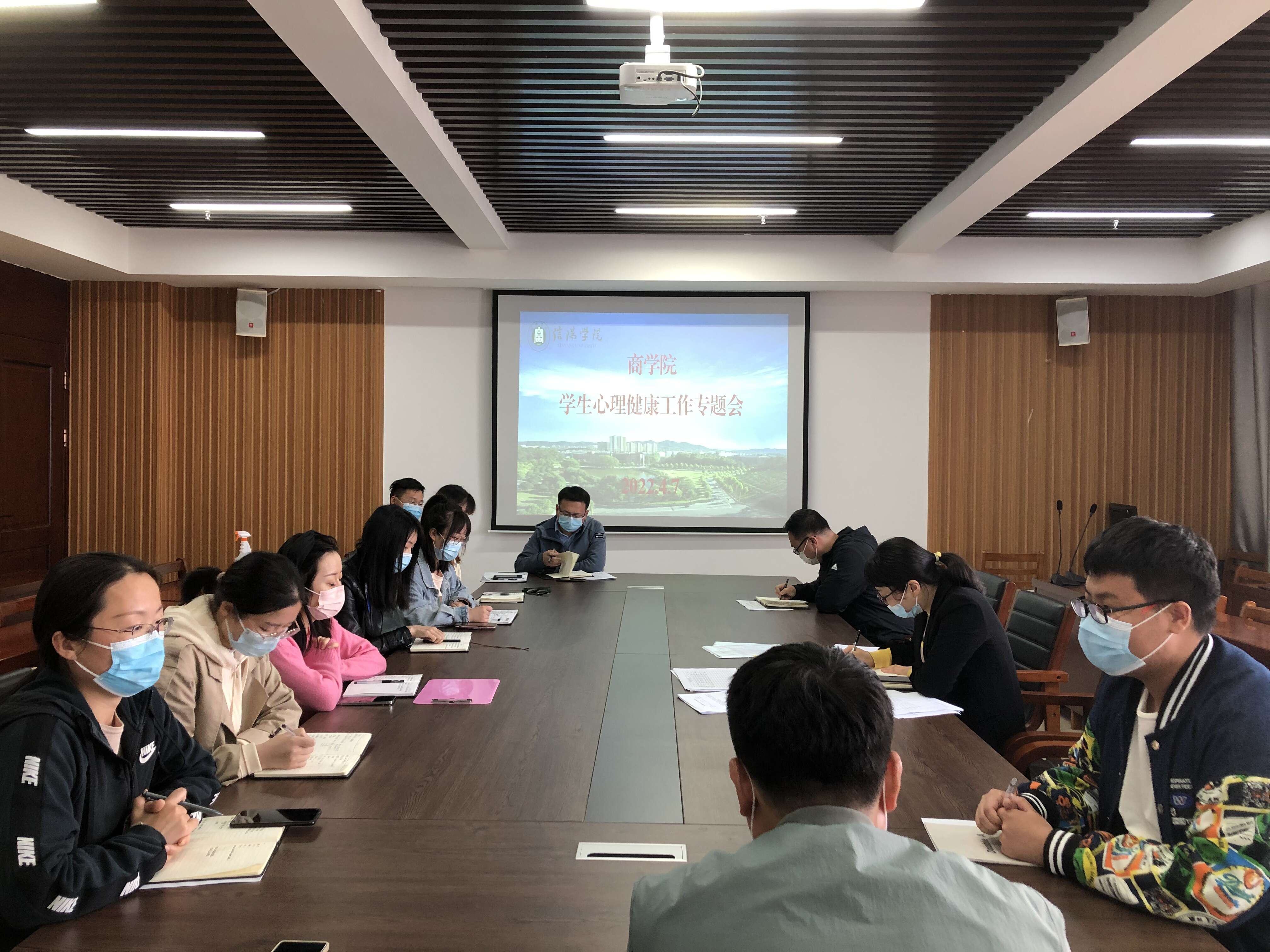 为提升辅导员队伍心理育人与危机干预能力,降低学生心理危机事件的发生率,减少大学生因心理危机带来的负面影响,促进大学生健康成长,促进校园与社会的和谐稳定,4月11日下午,商学院辅导员能力素质提升心理健康工作培训会在715会议室举行。党总支书记胡秀云做了主题培训、学工干事黄伟和全体辅导员参加了会议。