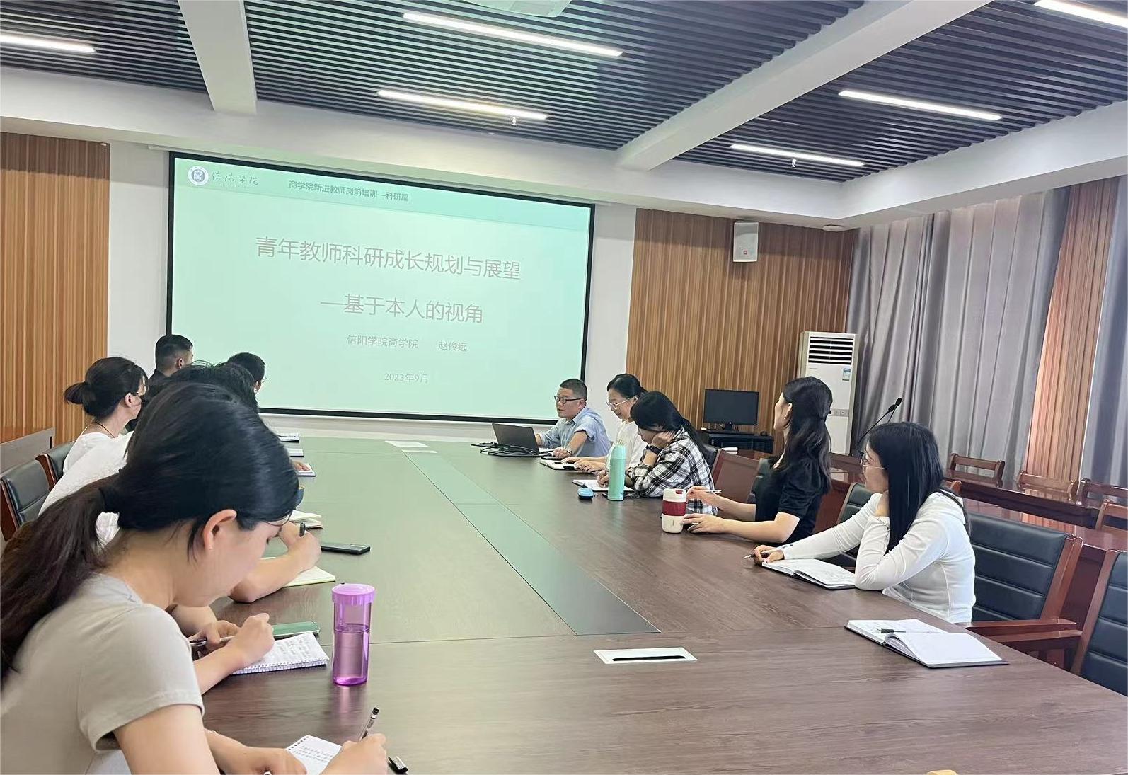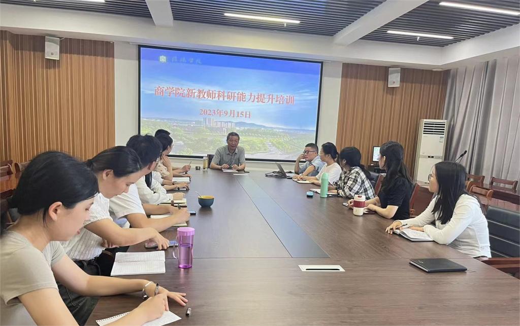为快速提升新进青年教师科研水平,及早适应大学教师职业发展需求,9月15日,商学院在综合楼715召开科研能力提升研讨会。副院长李毓、担培训任务的教师赵俊远和尚瑶瑶、新进教师蔡梦丽等参加此次会议。