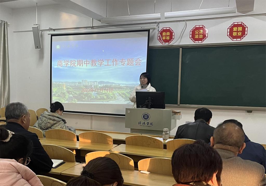 11月15日下午,商学院在综合楼608教室召开本学期期中全体教师会,商学院院长刘玉来,党总支书记胡秀云,副院长李毓、吴新静和全体教师参加了会议。会议由胡秀云主持。