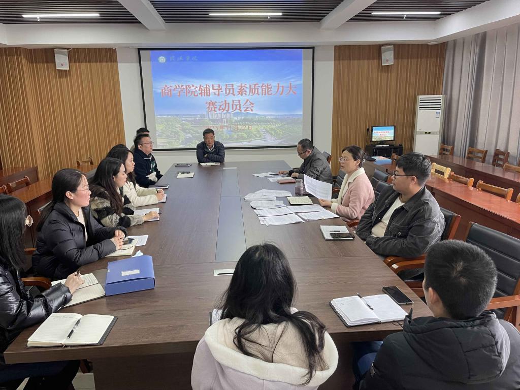 为进一步提升辅导员素质能力,做好学校第十三届辅导员素质能力大赛备赛工作,11月22日上午,商学院辅导员素质能力大赛动员会在综合楼715教室召开,商学院书记胡秀云、学工负责人花端阳以及全体辅导员参加了此次会议。会议由学工负责人花端阳主持。
