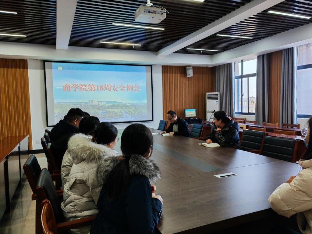 1月4日下午,商学院在综合楼715会议室召开本学期第18周学生安全工作例会,商学院书记胡秀云、学工负责人花端阳以及全体辅导员参加了此次会议。会议由学工负责人花端阳主持。