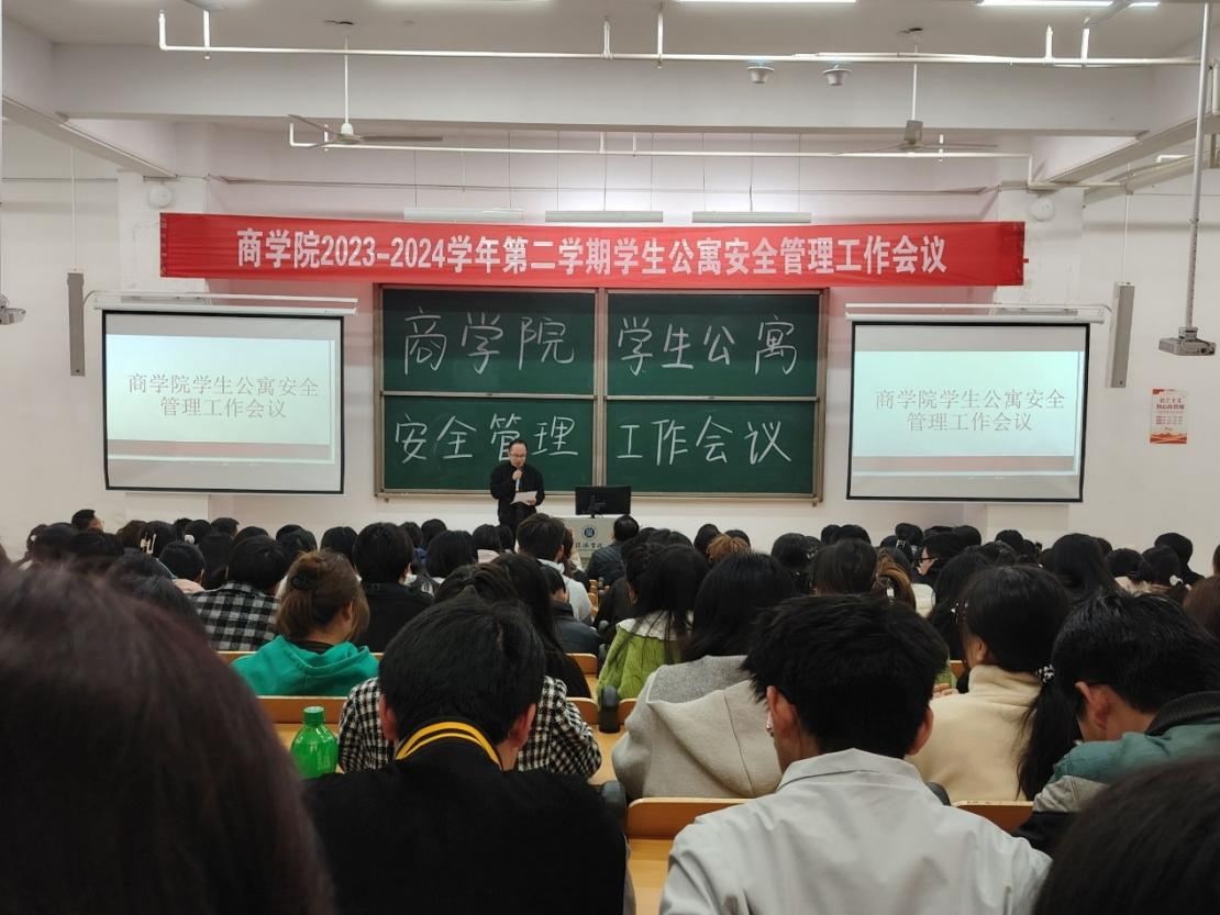 为加强学生公寓安全管理,切实发挥宿舍长、楼层长的模范带头作用,增强同学们的安全意识,3月19日,在综合楼203召开商学院学生公寓安全管理工作会议。院长刘玉来、党总支书记胡秀云、学工负责人花端阳、团总支书记乔梁、全体辅导员老师以及宿舍长、楼长代表参与本次会议。会议由花端阳主持。