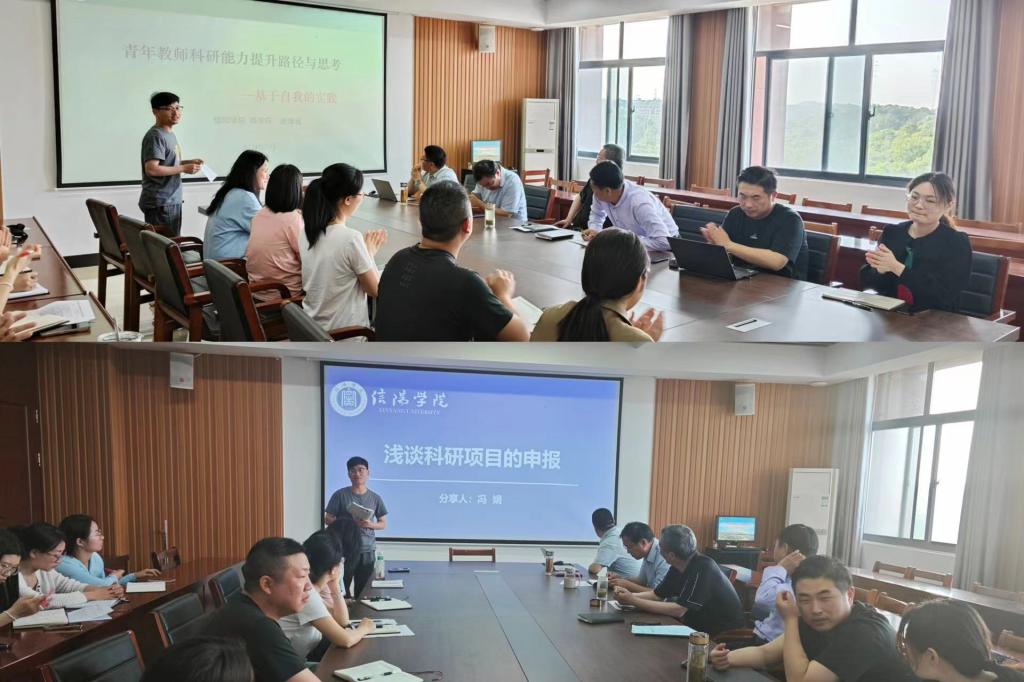 随后,赵俊远教师结合自身多年科研经历,围绕“什么是科研”“高校教师为什么做科研”“高校教师如何做科研”“青年教师如何进行科研选题”四个方面做出经验分享。赵俊远老师明确指出,青年教师想做好科研,首先要培养自己的科研兴趣;其次好的选题是科研成功的一半,青年教师要结合当前研究热点和自身专业进行选题;再次鼓励青年教师要多尝试申请校级、市厅级以及省级课题项目,多做积累,不断丰富自身科研成果。冯娟老师结合自身经验围绕科研项目申报的类型、选题和撰写进行全面的分享。