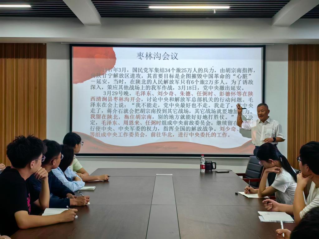 随后,王强副校长以《把握历史主动,走好新的赶考之路》为主题作专题报告,王校长运用大量珍贵的历史影像资料和自己实地考察革命旧址的经历,全面阐述了“赶考精神”的形成过程及精神内涵。王强校长指出,“赶考”是党特有的一种精神品质,“赶考精神”形成的历史是中国共产党100多年的奋斗历史,它与中国革命息息相关,尤其与西柏坡精神紧密相连,让大家深刻学习认识到西柏坡精神产生于中国革命重要的历史转折关头,决定着中国革命的前途和命运,它集中体现了为了人民、依靠人民的公仆精神,敢于斗争、敢于胜利的进取精神,政治协商、团结合作的民主精神,立规严纪、集中统一的看齐精神,谦虚谨慎、艰苦奋斗的赶考精神。