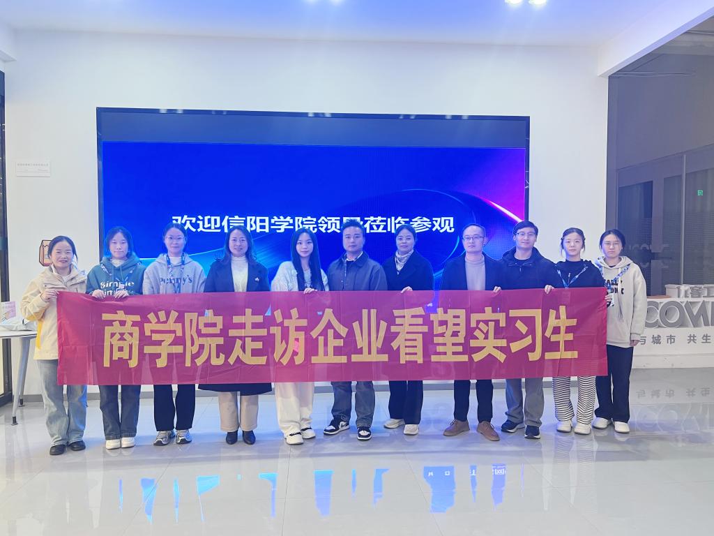 为深入了解我院学生在实习基地的具体情况,进一步深化校企合作,11月22日,商学院党总支书记胡秀云、副院长吴新静、学工干事花端阳、管理会计教研室主任黄振兴及郑慧慧老师共同前往信阳禾辅电子科技有限公司进行了实地看望和慰问。