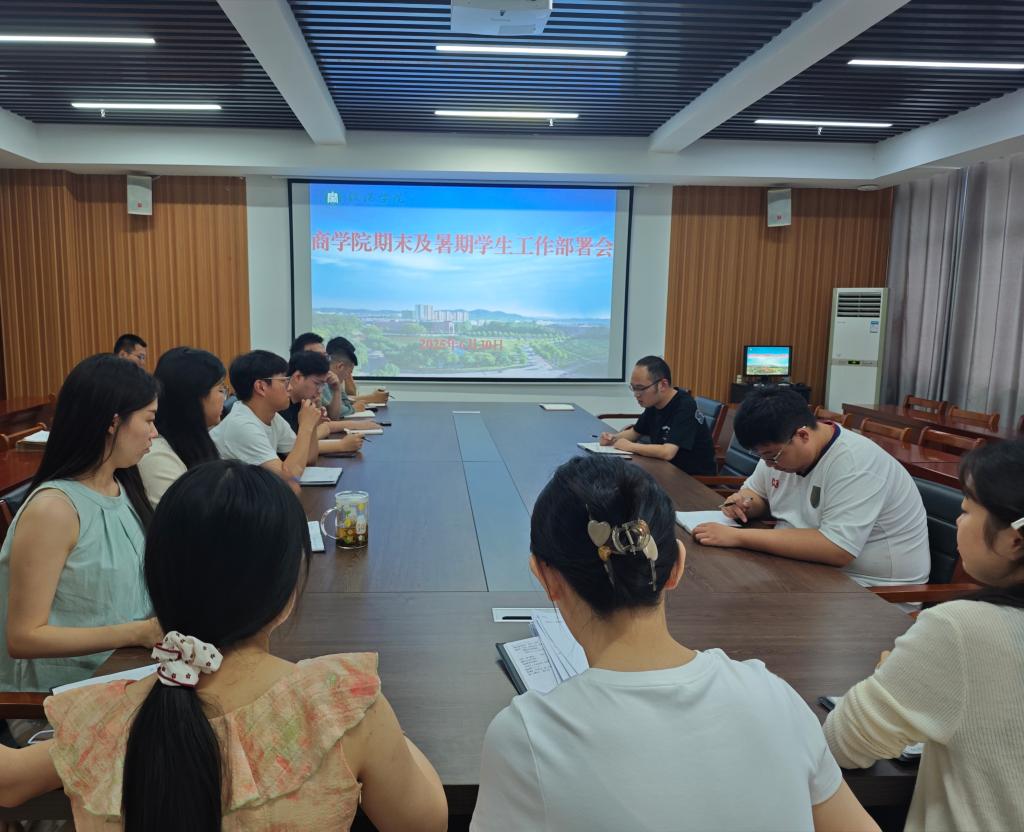 为扎实做好学期收尾工作,科学规划暑期学生事务,保障各项工作平稳有序衔接,6月30日上午,商学院在综合楼715会议室召开期末及暑期学生工作部署会。学工干事花端阳及全体辅导员参加会议,会议由花端阳主持。
