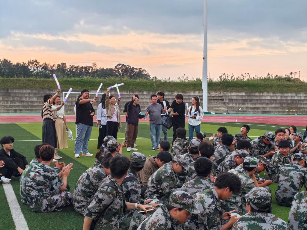 为丰富军训生活,彰显人文关怀,鼓舞新生军训士气,9月25日晚,商学院在田径场举办2025级新生军训慰问演出活动。商学院党总支书记胡秀云,学工干事花端阳,团总支书记乔梁,全体新生辅导员及2025级全体新生、慰问演出小分队参加活动。