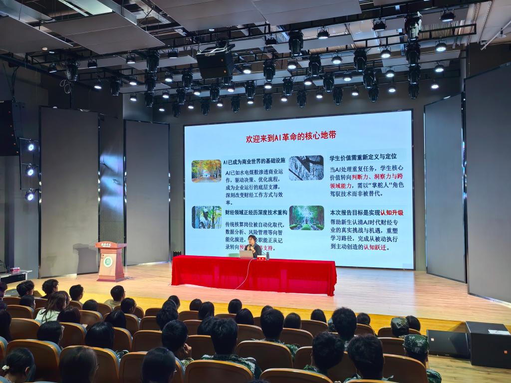 报告中,陈琳教授结合AI技术对财经行业的重塑趋势,围绕新生关切的学业规划、职业发展、综合素质提升等关键问题深入解读。她不仅帮助新生清晰认知智能时代下财经专业的新挑战与新机遇,更具针对性给出重塑学习路径、转变思维模式的具体建议,助力大家实现“从被动接收知识到主动创新实践”的认知跃迁,为新生的大学成长与未来发展点亮前行明灯。