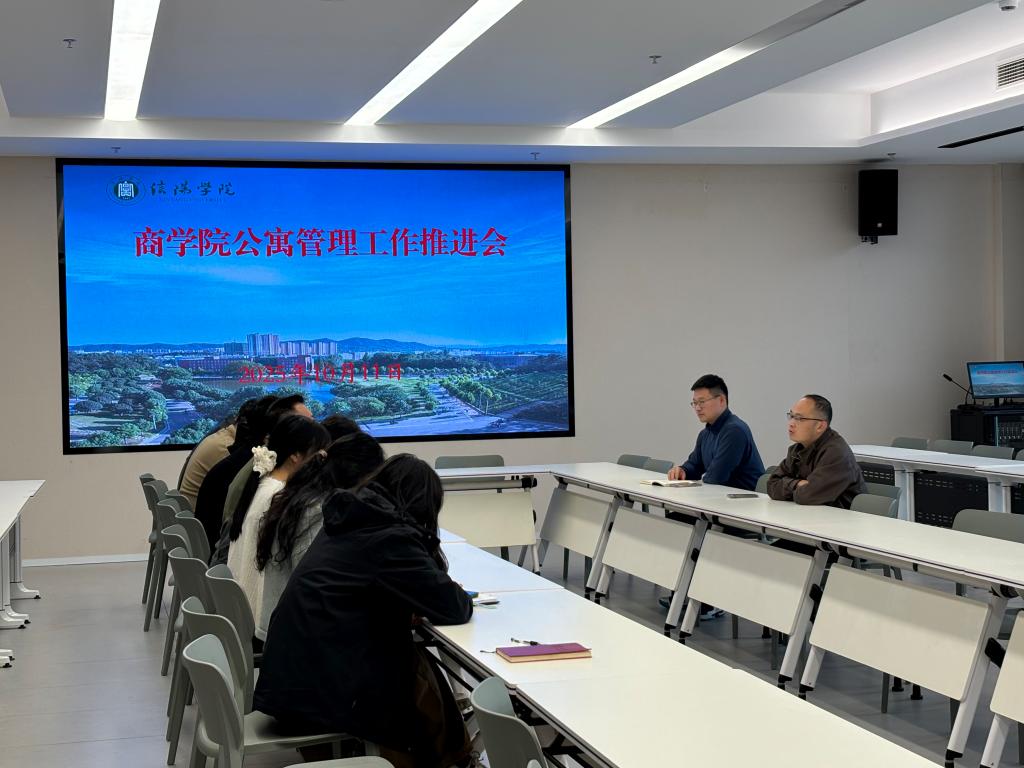 此次推进会不仅为商学院后续公寓管理工作划定了重点、明确了实施路径,更凝聚了工作共识,为进一步提升宿舍管理精细化水平、筑牢学生安全防线提供了有力支撑,也为营造更有温度、更具秩序的学生住宿环境奠定基础。