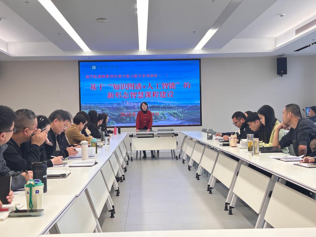 为积极响应教育数字化转型号召,进一步提升教师数智化教学素养与课程设计能力,助力学院人才培养质量升级,10月14日下午,商学院在教三楼530会议室开展教师数智化教学能力提升系列讲座,首场以“基于‘知识图谱+人工智能’的新形态智慧课程建设”为主题。讲座由商学院教学副院长吴新静主持,教师余冬梅、李静主讲,全院各专业教师代表参会,现场交流氛围浓厚。