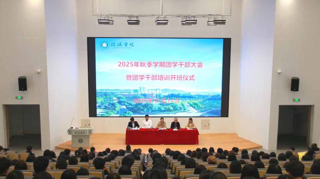 为明确新学年团学工作方向,提升团学干部的综合素质,进一步加强学生组织的凝聚力和战斗力,10月14日中午,商学院在教三楼005演播厅召开2025年秋季学期团学干部大会暨团学干部培训开班仪式。商学院党总支书记胡秀云,学工干事花端阳,团总支书记乔梁,各社团指导老师,全体辅导员,全体学生会成员及各班班委参加此次会议。大会由陈镜屹主持。