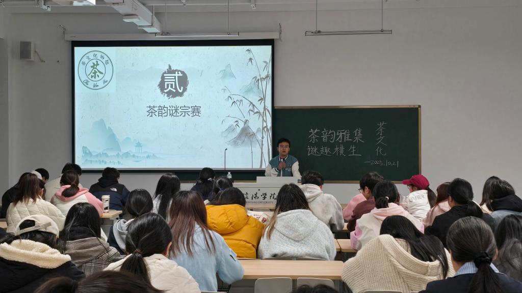 活动伊始,主持人孟祥赓通过生动的PPT,向在场成员介绍了茶文化协会的发展历程、特色活动及茶文化传播理念,随后为大家分发定制小礼品,轻松亲切的开场迅速拉近了成员间的距离。紧接着,活动“茶韵谜宗赛”环节正式开启。此次活动内容丰富多元,既包含茶叶产地辨识、冲泡手法区分等茶知识类题目,也涵盖成语解谜、俗语猜意等经典灯谜,兼顾专业性与趣味性。谜题难易梯度设计合理,既让传统文化爱好者能展现积累、深入探索,也能让刚接触茶文化的新手轻松参与、快速找到乐趣、收获成就感。活动现场氛围热烈融洽,茶的清雅与谜的趣味相互交融,让整个活动既充满脑力比拼的紧张感,又洋溢着传统文化交流的温馨感。