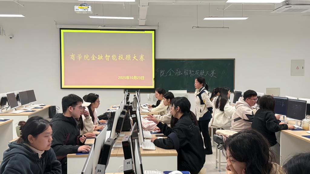 为提升学生金融素养与实践能力,搭建对接行业需求的实战平台,10月23日中午,商学院在教三楼304教室举办2025年河南省大学生金融智能投顾大赛校内选拔赛。本次比赛共有28位选手参赛,指导教师裴奇、李霞影、郑慧慧、高志强全程提供专业指导。