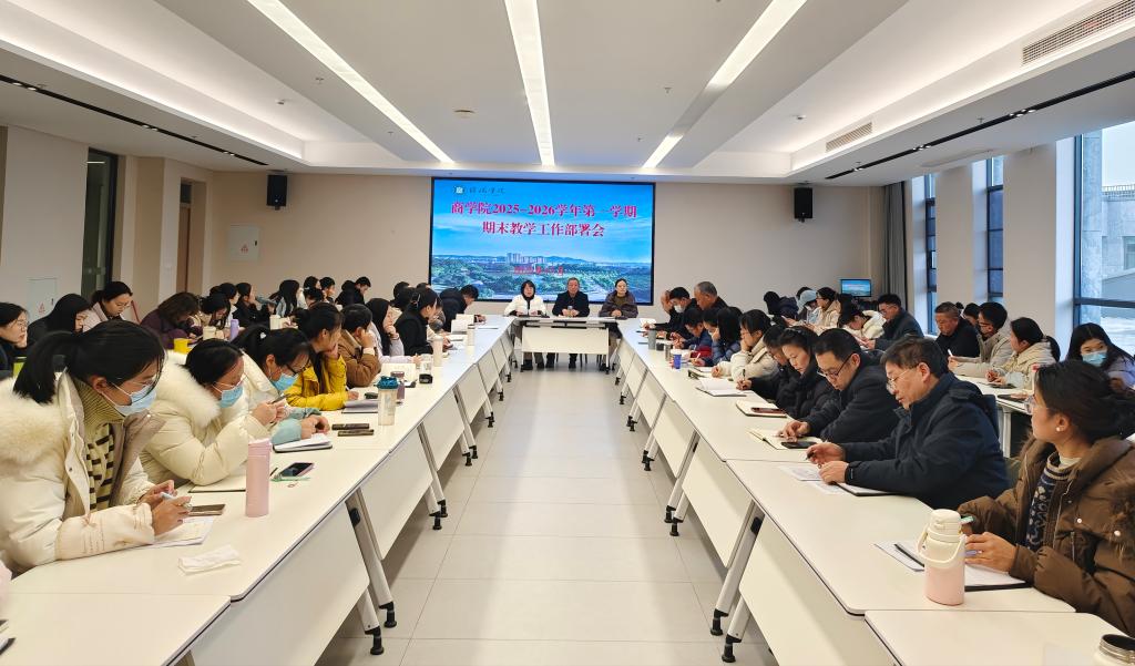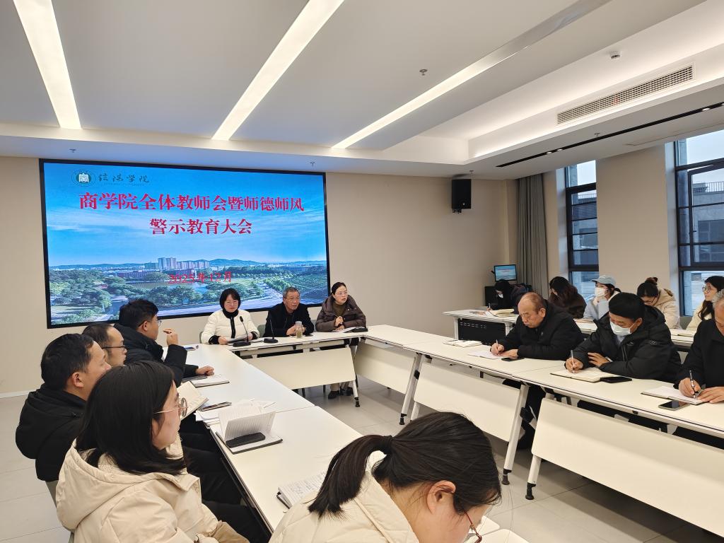 12月26日,商学院在教三楼530会议室召开期末工作会暨师德师风警示教育大会。商学院党总支书记胡秀云、副院长李毓、吴新静及全体教师参会,会议由胡秀云书记主持。