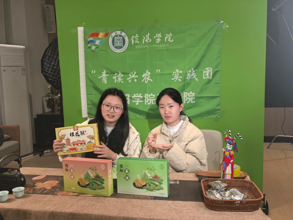 直播现场,实践团成员化身“带货主播”,采用信阳方言与普通话相结合的亲切表达,向直播间观众全方位推介信阳特色农产品。介绍信阳茶饼时,成员们从原料选材、手工制作流程,到红茶味、绿茶味等口味特色,再到日常食用、节日馈赠等场景,结合试吃体验细致讲解,直观展现产品独特魅力。同时,主播们积极与观众互动答疑,营造出热烈活跃的直播氛围。