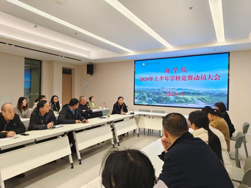 为深化实践育人成效,进一步激发师生参与学科竞赛的积极性,3月19日,商学院在教三楼530会议室召开2026年上半年学科竞赛动员大会。商学院党政班子、全体专任教师及辅导员参加会议。