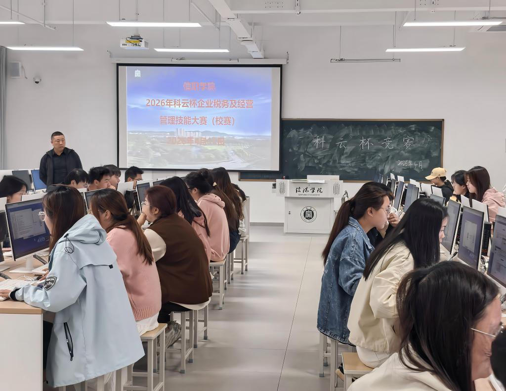 为进一步深化产教融合,锤炼学生专业实操能力,4月15日,商学院在教三楼303教室举办2026年“科云杯”企业税务及经营管理技能大赛校内赛。本次赛事吸引了10余支队伍、近50名学生踊跃参赛,丁一楠、张志强负责宣传、组织和培训,王亚丹、胡椰青、李舸滔等十多位专业教师担任指导老师,全程对各参赛队伍进行针对性指导与专项训练。