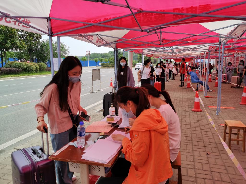 为实现闭环管理,在火车站、汽车站、机场设置了接站点,安排教师值守接站,租用专车将学生从各个站点直接送到学校大门报到点,毕业班辅导员等现场报到接待人员也提前到岗迎接亲爱的同学们回归母校。