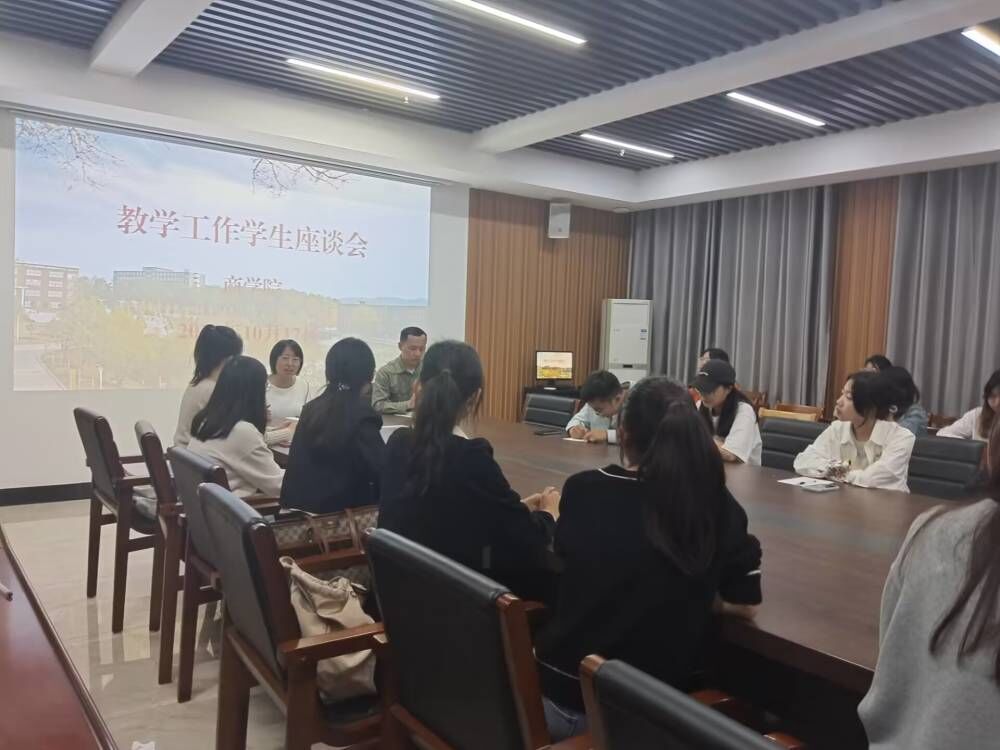 座谈会上,学生代表对教师的教学方法、教学内容、课堂管理和学生学习状态等方面谈现象、说问题,大家踊跃发言。与会学生代表既充分肯定了商学院教师的师德师风和较高的专业水平,同时也对目前存在的问题和不足提出了中肯的建议。与会领导、老师认真听取学生意见,针对学生们提出的问题认真记录并逐一进行了答复和解释,现场不能解决的问题将在会后把问题汇总给相关部门及时沟通协调解决。