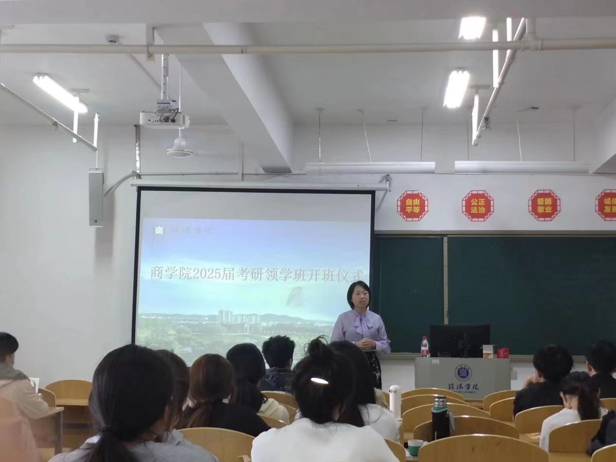 为进一步加强我院学风建设,全面调动2025届学生的考研积极性,帮助学生明确考研目标、增强考研信心,10月31日,商学院在综合楼301举办2025届考研动员暨领学班开班仪式。
