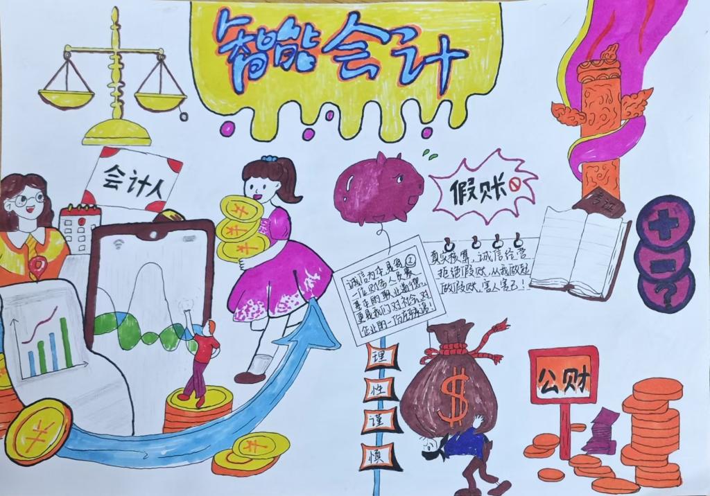 大赛以线下形式开展,采用选拔赛的方式进行。比赛伊始,协会组织收集各位参赛者的作品,这些作品均以会计知识为核心主题,通过水墨书画的韵味、图表样式的直观、图文结合的巧妙等多种艺术手法,将枯燥的会计知识变得生动有趣。参赛作品不仅种类繁多、色彩斑斓、布局精巧,而且内容丰富、寓意深刻,充分展现了“发散思维,让会计学与手抄报碰撞出别样色彩”的比赛主旨。