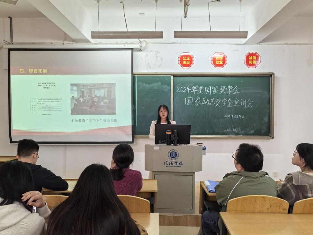 为深入贯彻落实国家资助政策,充分发挥优秀学生的榜样引领作用,激励广大学子积极进取、奋发向上,3月24日下午,商学院在综合楼301教室开展2024年度国家奖学金与国家励志奖学金先进事迹宣讲活动。学院全体辅导员及各年级学生参加了此次活动。