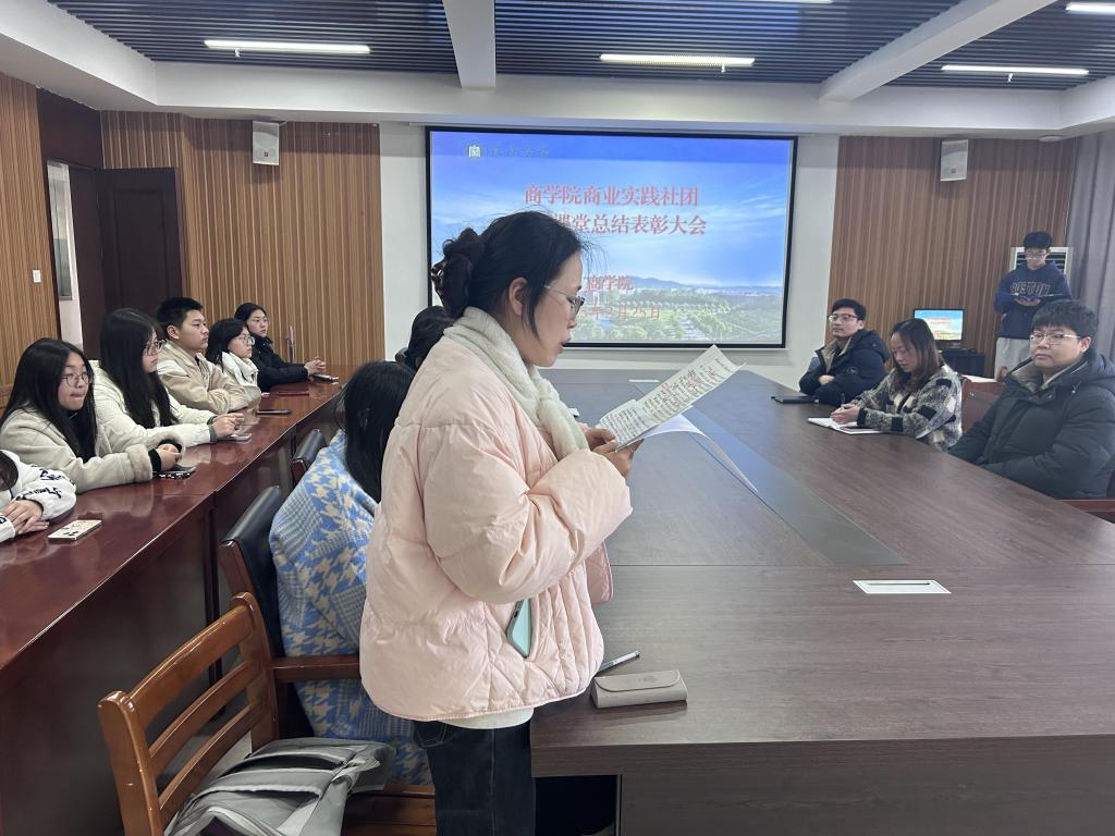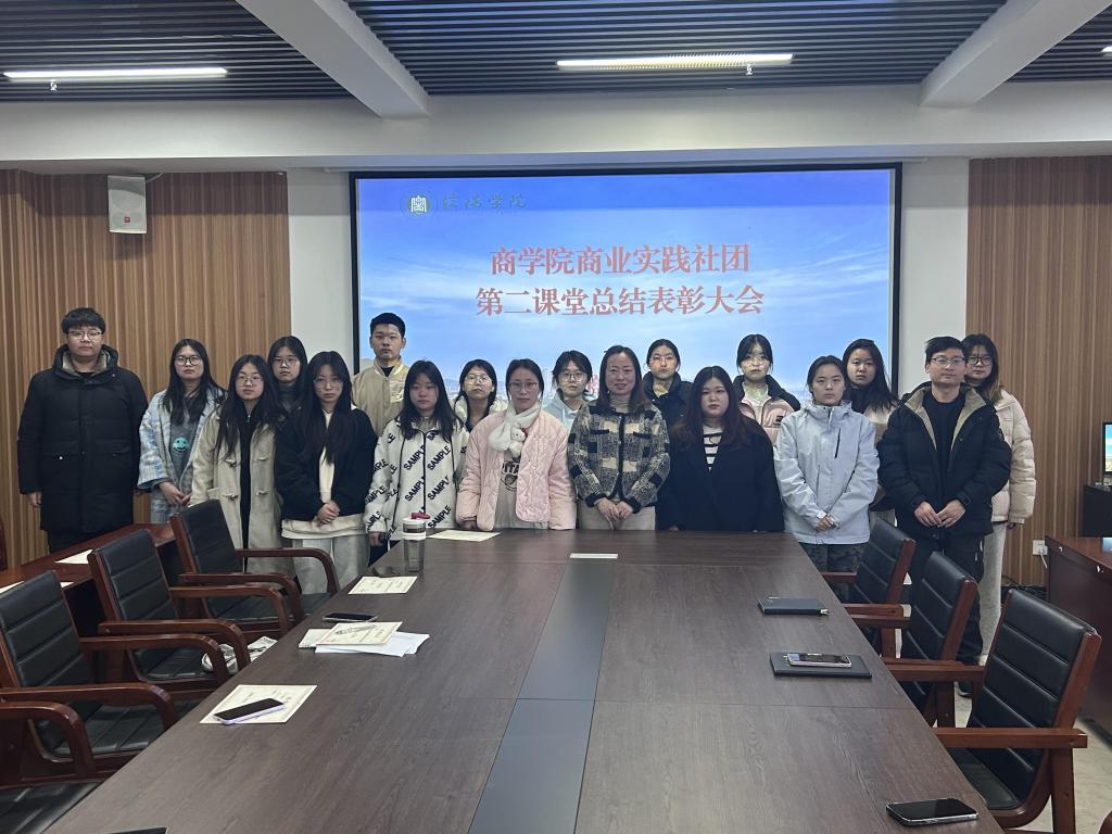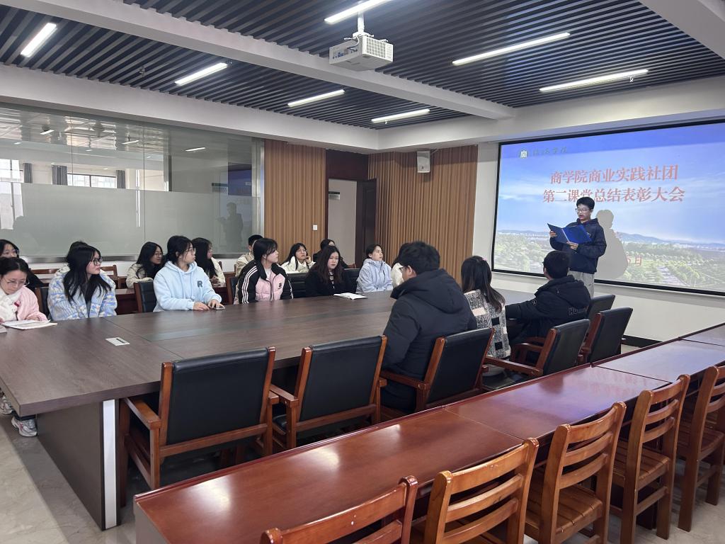 为全面总结2024年商业实践社团工作,表彰先进,谋划部署新学期工作重点,进一步激发社团成员的积极性与创造力,2月25日下午,商学院在综合楼715会议室举办商业实践社团总结表彰大会。商学院副院长吴新静、团总支书记乔梁、指导教师黄振兴及商业实践社团的全体成员参加了会议。会议由孙先鹤同学主持。