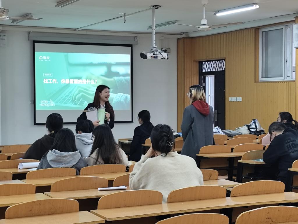 与此同时,综合楼205教室内,上海链家以其开放包容的企业文化、完善的薪酬福利体系、系统的职业发展培训及广阔的行业视野,为我院学子描绘了一幅令人向往的职业画卷。宣讲会上,学生们积极提问,围绕专业对口性、企业人才特质需求、公司发展前景与机遇等议题,与企业代表进行了深入交流。上海链家企业代表不仅耐心解答了学生的所有疑问,还特别邀请了优秀校友分享职场心得与职业规划,为参会学生提供了宝贵的职业导航。